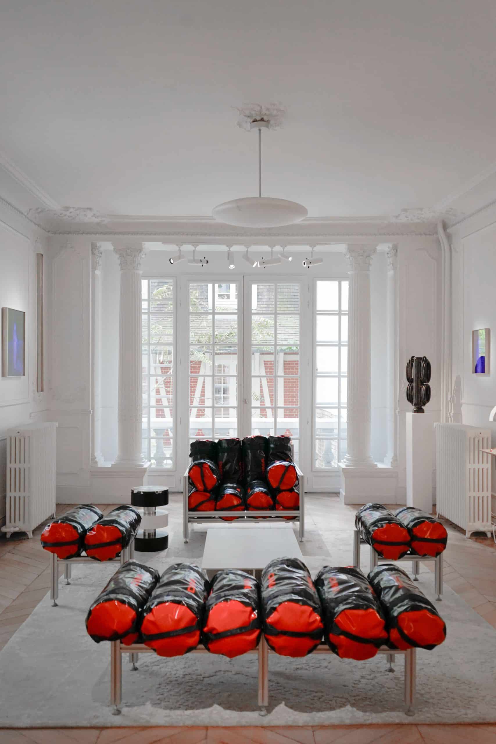 沙发、扶手椅、长凳和凳子均由铝型材和健身袋制成。它们在视觉和触觉上的等同性产生了一种令人不安的效果:体积在外观上是巨大的,但触感却令人惊讶地舒适。名称 SCHIRCH- 这个词来自弗朗茨-韦斯特(Franz West)流行的维也纳方言(意为 "不美"、"粗糙")--将这种差异视为一种美学原则:利用普通材料创造出坦率、直接和敏感的形式。
